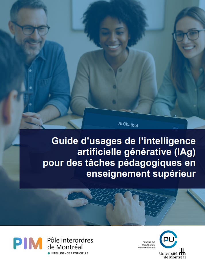 🔥 En bref : Parmi les guides proposés sur l’IA, publiés ces derniers mois, peu ont le niveau de qualité de celui du Centre de pédagogie universitaire de Montréal / Pôle interordres de Montréal