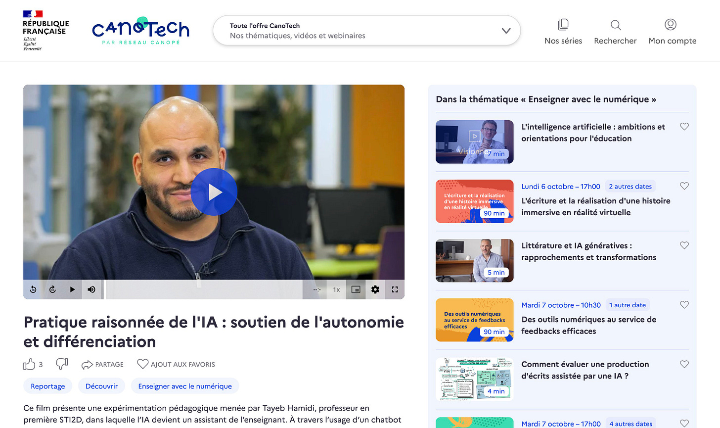 Canopé, via sa plateforme Canotech, vous propose un reportage au sein d’une classe pour voir comment Tayeb Hamidi, professeur en 1ère STI2D, utilise l’IA pour l’assister.