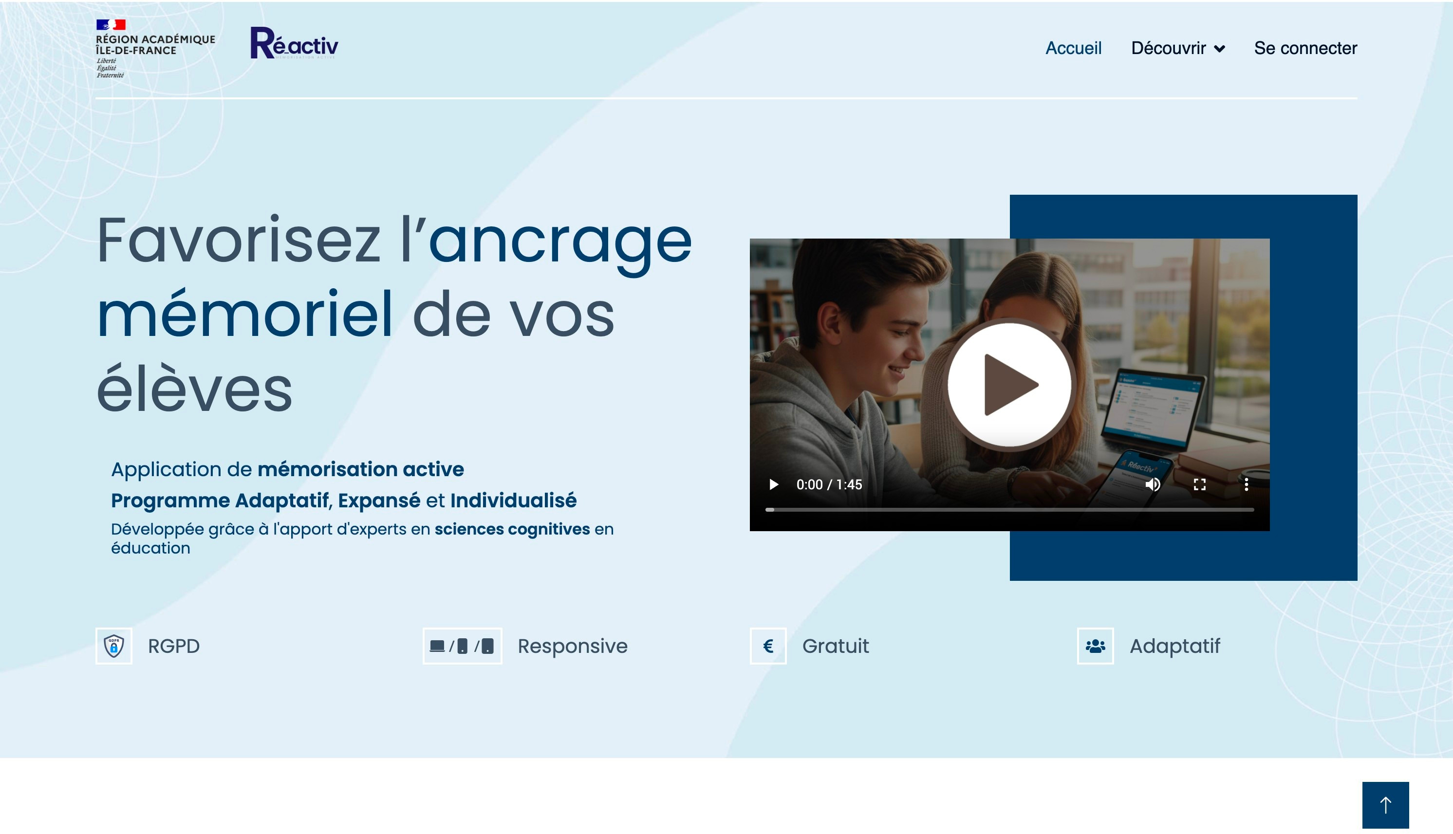 Application de mémorisation active Programme Adaptatif, Expansé et Individualisé Développée grâce à l’apport d’experts en sciences cognitives en éducation. »