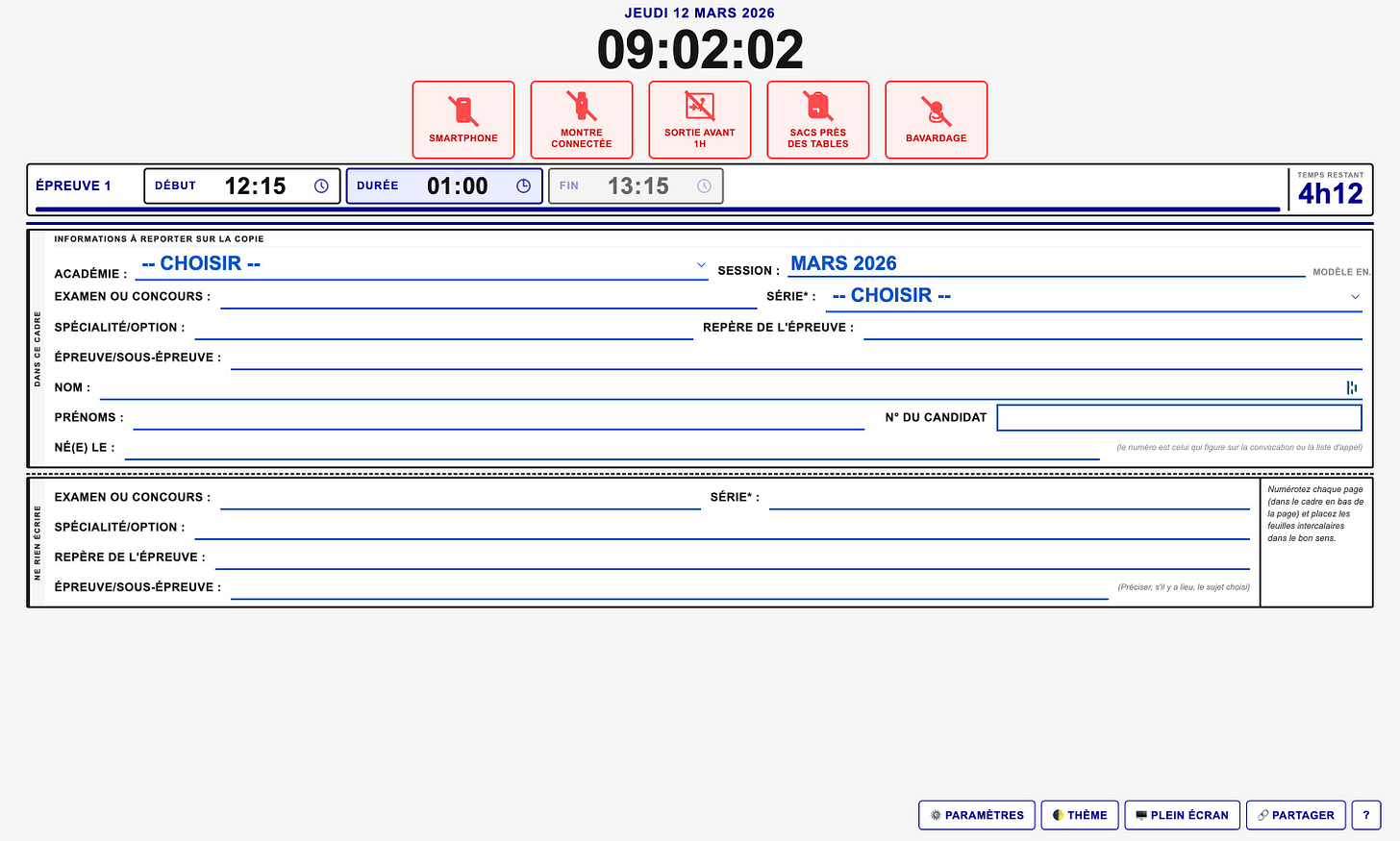 🧠 L’intérêt : Son outil permet de saisir et de projeter dans une sorte de facsimilé toutes les informations attendues de l’en-tête des copies.